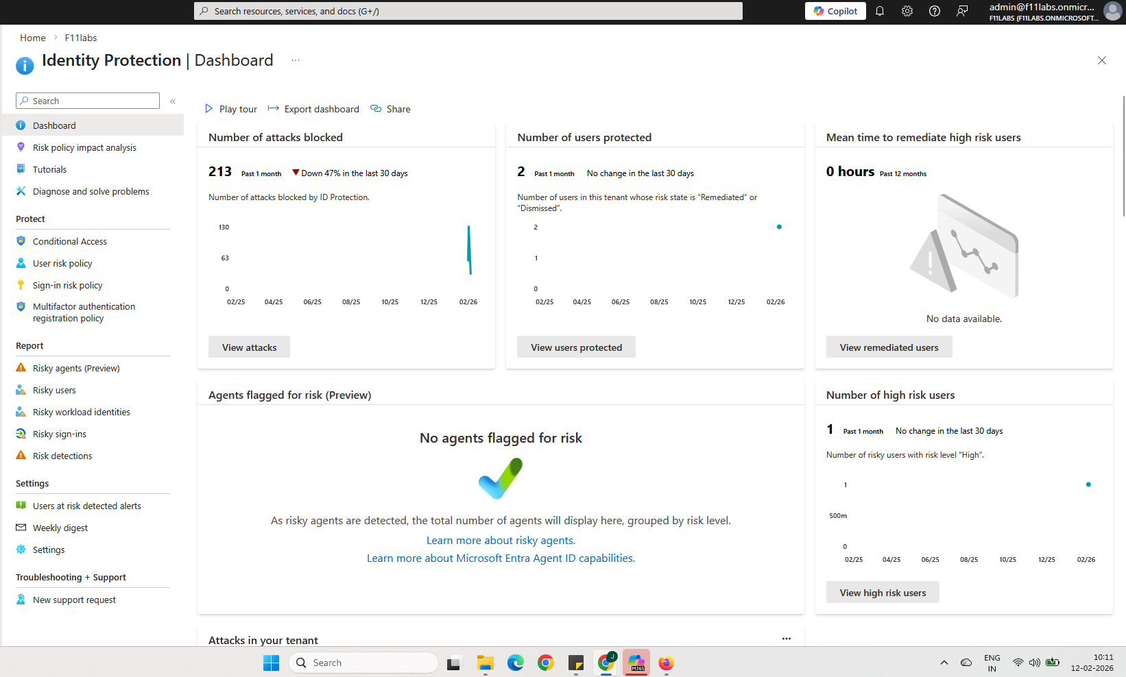 - Confirm the Identity Protection dashboard loads